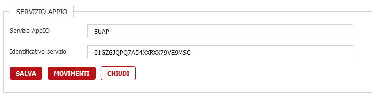 - l'ambito del servizio (per ora è funzionante solo Movimento),