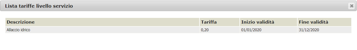 La funzionalità permette di creare nuovi valori da associare alle tipologie di servizio. Un livello di servizio è rappresentato da un segnaposto/etichetta - la tipologia di livello di servizio - una tariffa da applicare a questo livello di servizio e una data di validità dello stesso.