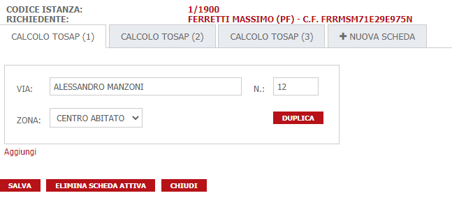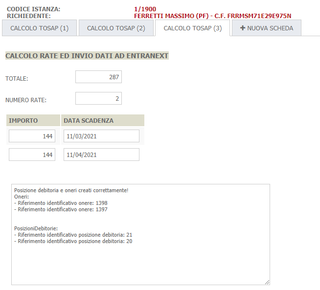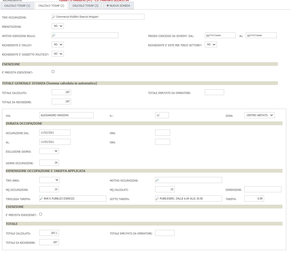 Il calcolo degli importi, su richiesta dell'Ente, viene effettuato mediante l'utilizzo di 3 schede dinamiche separate: - Calcolo TOSAP (1) - Calcolo TOSAP (2) - Calcolo TOSAP (3)