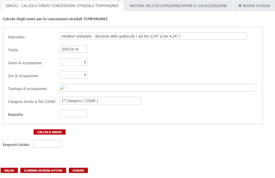 Di seguito viene utilizzata la procedura per il calcolo COSAP per le concessioni stradali
