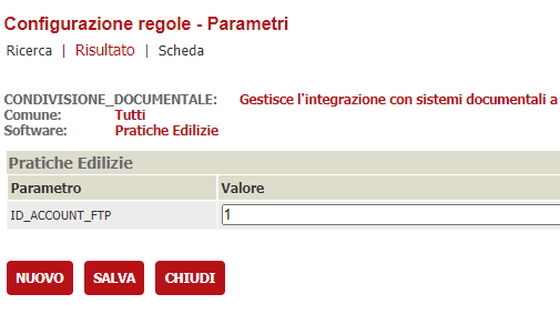 L'unico parametro che va impostato è ID_ACCOUNT_FTP in cui va inserito l'ID ( ACCOUNT_FTP.ID ) dell'account descritto nella sezione Account ftp