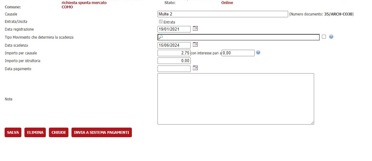 Se attivo nodo pagamenti e non è presente una posizione debitoria, allora compare il bottone "Invia a sistema pagamenti".