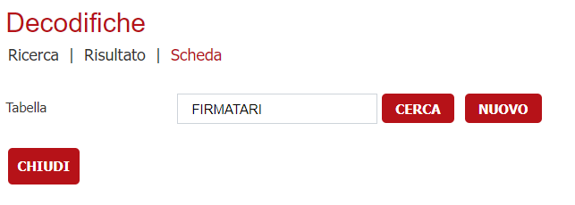 - Creare una nuova decodifica inserendo il nome del contesto nel campo Tabella ( ad esempio FIRMATARI )