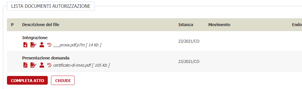 Durante questa fase nessun documento viene ancora trasmesso al gestionale esterno degli atti, per cui è possibile aggiungere/rimuovere documenti in libertà. Terminata questa fase, cliccare sul pulsante COMPLETA ATTO e VBG inizierà il dialogo con il gestionale atti esterno
