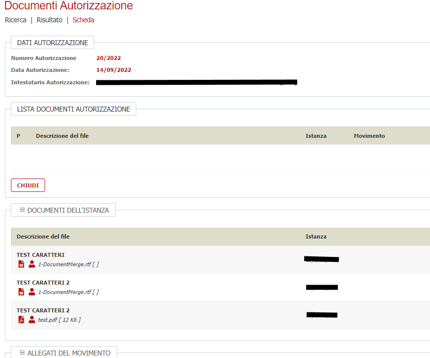 Allo stato attuale è obbligatorio produrre solamente il PDF che rappresenta il documento della determina ma possono essere anche prodotti altri documenti a corredo Per fare questo, cliccare sul pulsante DOCUMENTI AUTORIZZAZIONE per andare a verificare/indicare tutti quei documenti inerenti la determina. La sezione denominata LISTA DOCUMENTI AUTORIZZAZIONE verrà popolata andando a selezionare i documenti necessari, presenti nelle varie sezioni della pratica, aggiungendoli tramite il rispettivo pulsante