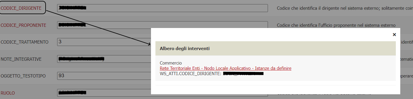 | CODICE_TRATTAMENTO | Codice del tipo di iter che viene passato al sistema esterno per identificare l'iter che l'atto seguirà nel gestionale esterno |
