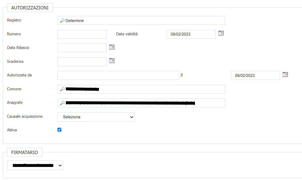 Per venire incontro all'esigenza di poter indicare un firmatario anche se li gestionale esterno degli atti non mette a disposizione un servizio contenente l'elenco dei firmatari, è possibile procedere in questo modo: