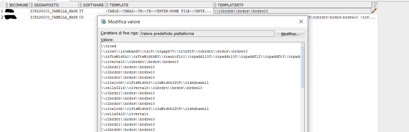 Il testo che rimane è il template da inserire nella colonna TEMPLATERTF della tabella SEGNAPOSTIPERSONALIZZATI