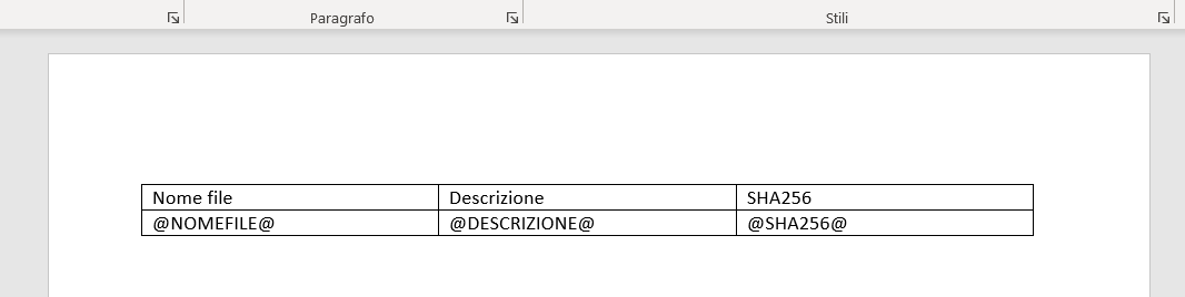 | SEGNAPOSTO | Nome del segnaposto da personalizzare a scelta tra quelli presenti nella tabella SEGNAPOSTI | SI |