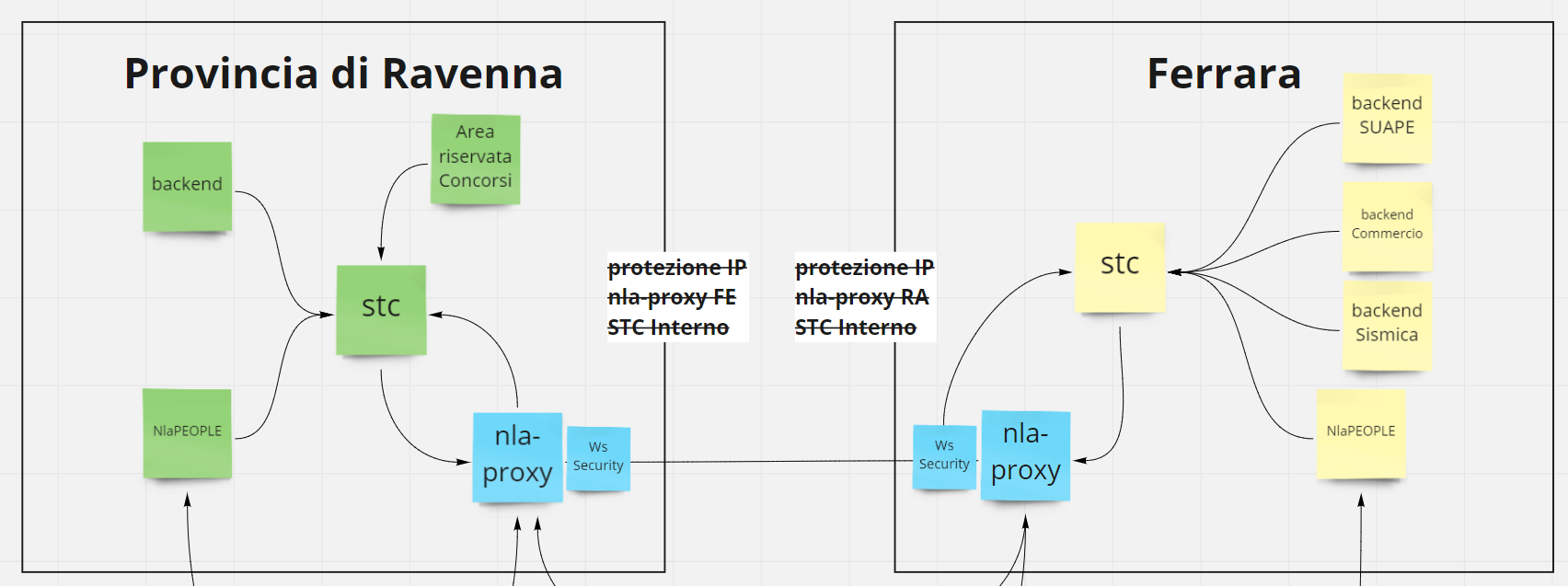 L'idea è quella di configurare e lanciare durante lo sviluppo due tomcat in locale uno sulla porta 8081 (Ravenna) l'altro sulla porta 8080 (Ferrara). Entrambe i tomcat dovrebbero avere il backend e STC e nla-proxy.