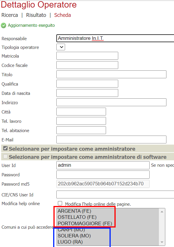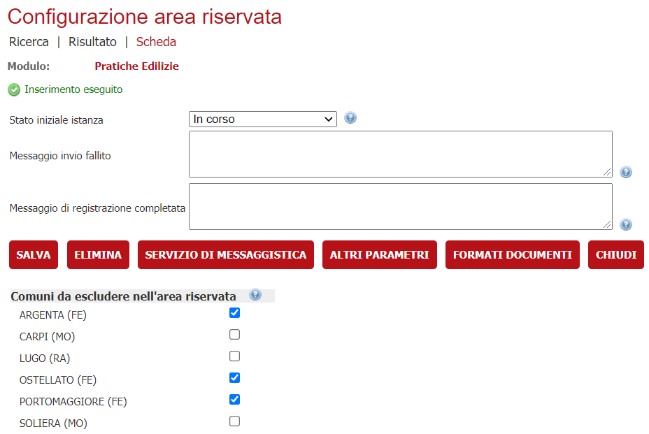 Nel backend di Ravenna vanno associati i comuni presenti in ferrara per permettere di gestire le pratiche per quegli enti e non dare errore in risposta. ES a Ravenna sono stati aggiunti i comuni del ferrarese e configurati sull'operatore che dovrà gestire le pratiche