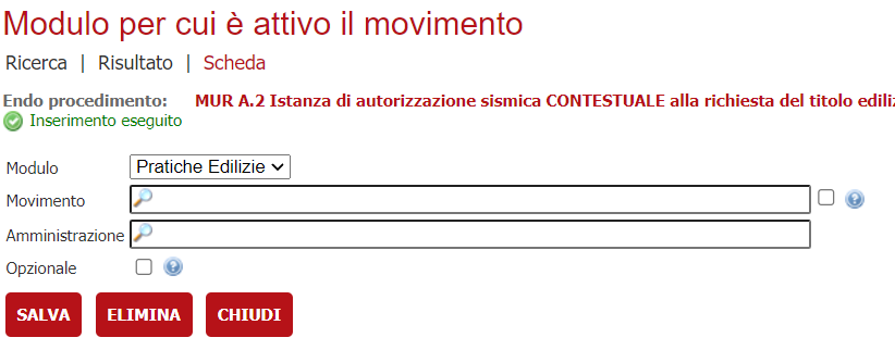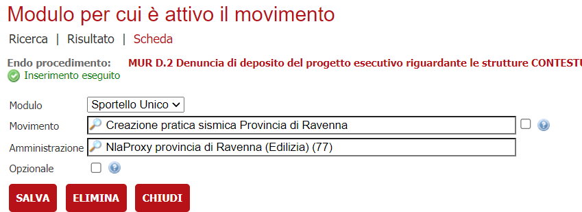 Nell'ambiente FERRARA è stato creato il movimento SSSISM01 - Creazione pratica sismica Provincia di Ravenna.