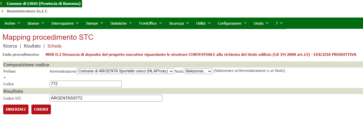 Configurate le amministrazioni che rappresentano l'ufficio sismica (in realtà edilizia) e il nodo nla-proxy (ovvero per conto dell'ufficio di Argenta)