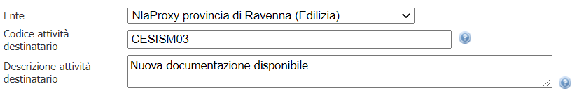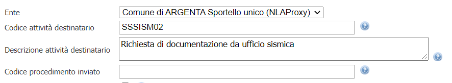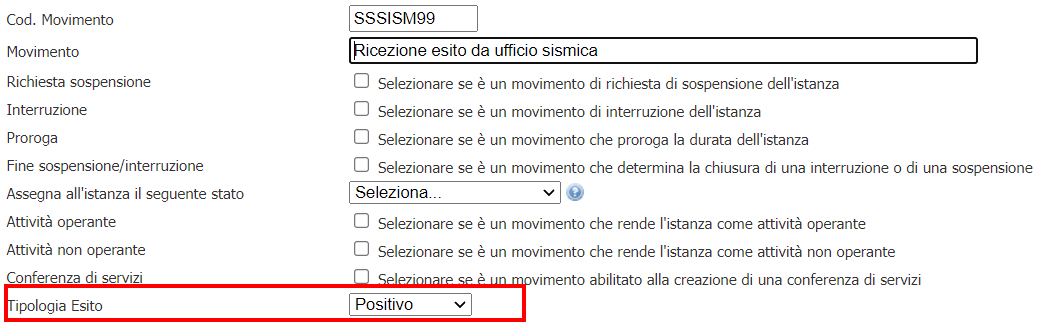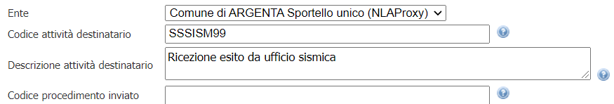 Configurato per inviare un codice attività SSSISM99 - Ricezione esito da ufficio sismica.