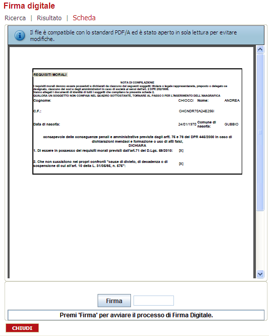 E' possibile firmare una form dinamica (scheda dinamica), compilata e trasformata in pdf, sia nella sua interezza che a blocchi. La distinzione avviene quando si associa una form dinamica all'albero degli interventi, ad un procedimento o ad una procedura.