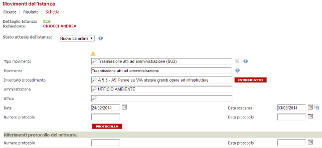 Sempre nel caso di un'istallazione multi comune, nella fase della ricerca dell'istanza è stata inserita la possibilità di scegliere il comune di riferimento.