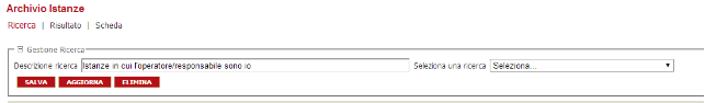 Per poter effettuare la ricerca sarà sufficiente selezionare almeno un'anagrafica che ha acceduto alla pratica oppure un numero istanza. Inoltre è possibile filtrare anche per un dato intervallo temporale impostando le date nel campo Periodo.