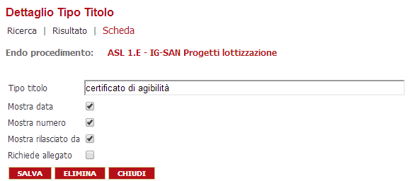 1-i testi "Procedimento principale", "Procedimenti attivati" e "Procedimenti attivabili" devono poter essere configurati (la parola procedimenti non è sempre corretta)