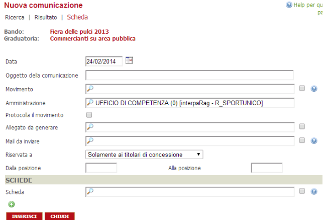 Schede dinamiche dei Mercati / Posteggi